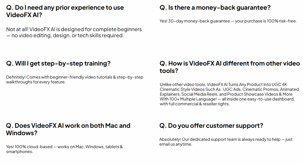 Is VideoFX AI worth it? Yes if you want a fast, budget-friendly way to create professional, UGC style videos without hiring video creators, this is a smart buy.